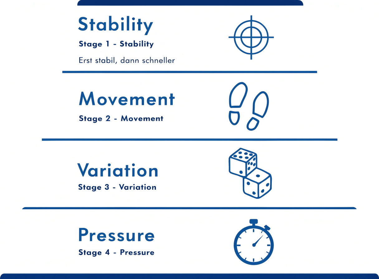Du steigst erst in die nächste Stufe, wenn Stufe 1 stabil ist. Nicht perfekt – aber stabil.