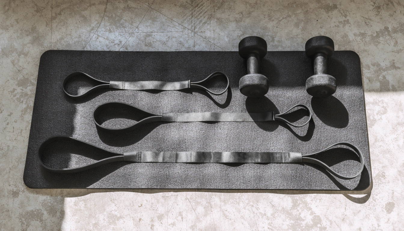 Auf Vielseitigkeit pro Quadratmeter: Bänder, Hanteln, kompakte Bank – statt großer Geräte mit nur einer Funktion.