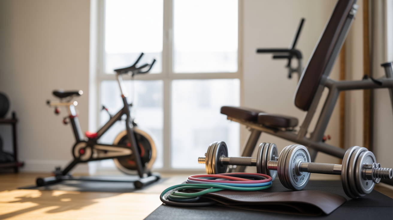 Für Ausdauer eignet sich ein Ergometer/Bike oder ein Rudergerät, abhängig von Platz und Lautstärke. Dazu kommt eine kleine Kraftkomponente, etwa Bänder oder Hanteln. So kannst du Ausdauer bequem dosieren und Kraft sinnvoll ergänzen – als Zielrahmen sind mindestens zwei Krafteinheiten pro Woche für viele ein guter Start.