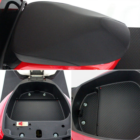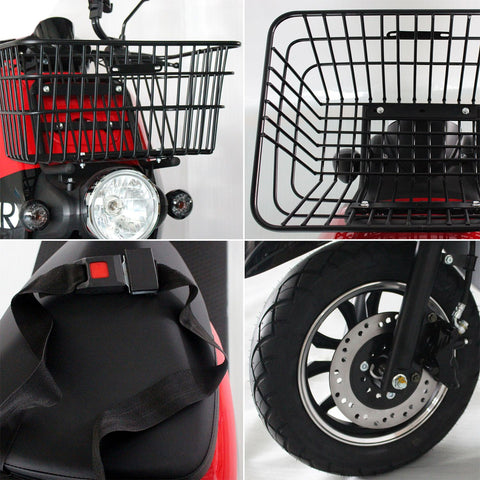 Der massive Stahl-Korb vorne bietet weiteren Stauraum von ca. 40L. Unter der Sitzbank befindet sich zudem ca. 10L Ablagefläche , die genau wie der Koffer abschließbar ist.