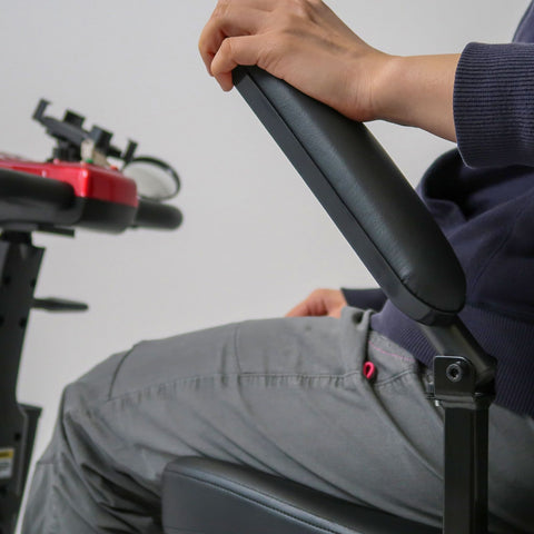 Der gemütliche Sitz ist um 360° drehbar und ermöglicht den Einstieg von allen Seiten. Die hochklappbaren Armlehnen sorgen für zusätzlichen Sitzkomfort. Im abnehmbaren Frontkorb findet sich Stauraum für Ihre Einkäufe.