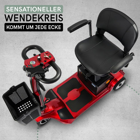 Der Krankenfahrstuhl Rolektro E-Trike 6 ist faltbar, leicht zerlegbar und findet Platz in jedem Kofferraum. Auch im Urlaub oder bei Familienbesuchen müssen Sie nicht mehr auf Ihre E-Mobilität verzichten. Der Akku mit insgesamt 24V-20Ah Leistung lässt sich bequem in- und extern laden.